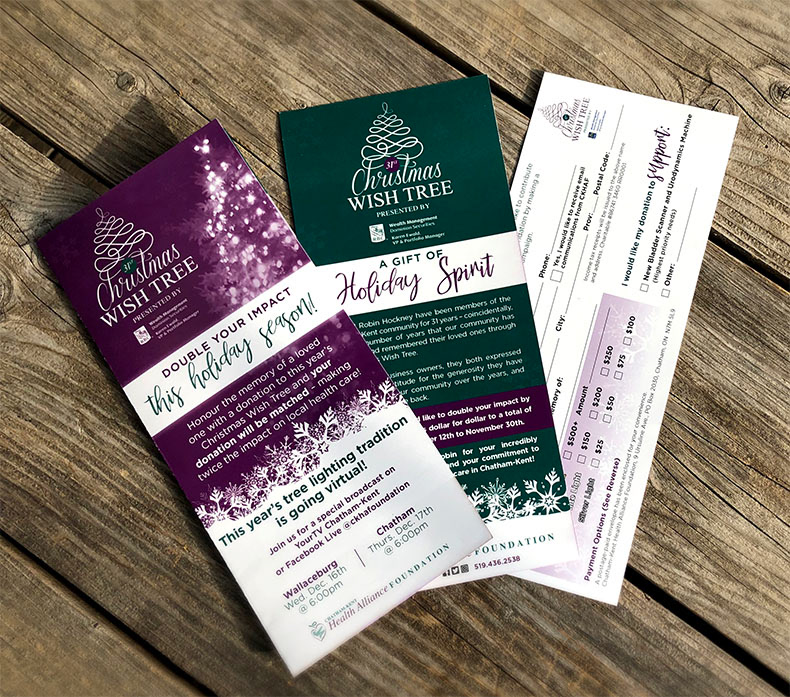 Print collateral for 2020 Christmas Wish Tree Campaign for CKHA Foundation.