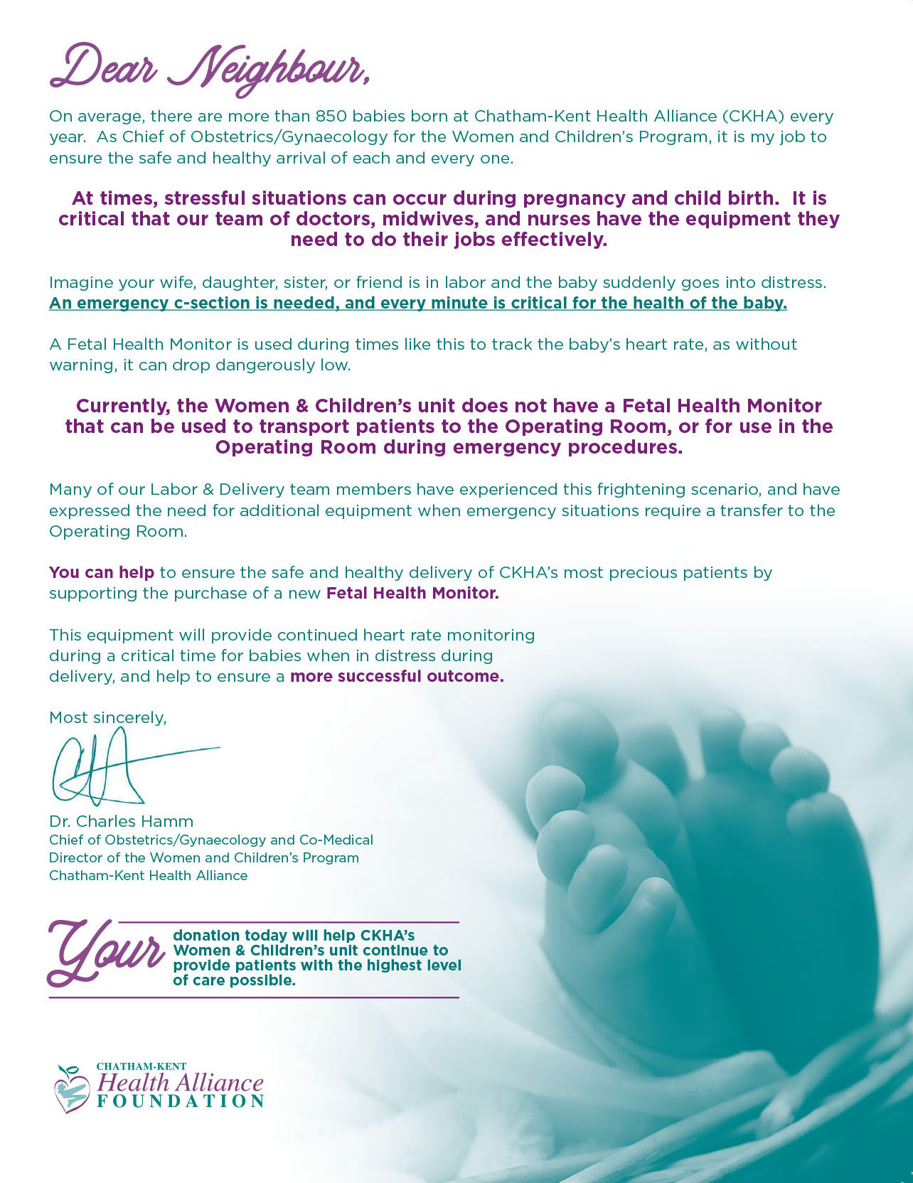 Spring Appeal campaign for the CKHA Foundation. Included a buck slip, letter and envelope.