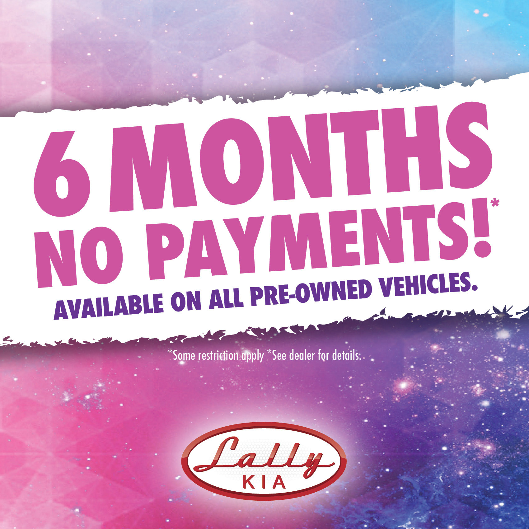 Social media graphics for Lally Kia's Deferral program.
